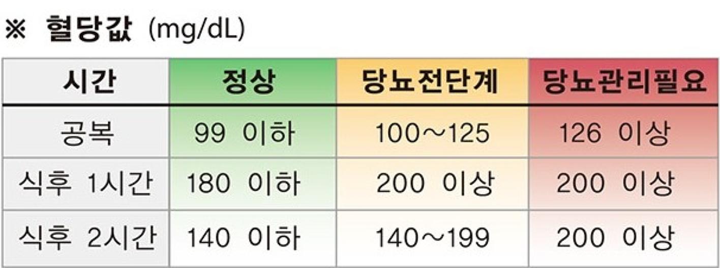 당뇨수치 기준표를 보면, 정상 혈당이 한눈에 확인됩니다. 위 표는 한국당뇨병협회의 당뇨병에 대한 기준이 되는 표라고 할 수 있습니다. 이에 따라 당뇨수치 기준이 확인될 수 있습니다. 혈당이 정상이라면, 공복 혈당은 100mg/dl이하로 나와야 합니다. 식사 후 1시간에는 180mg/dl 미만으로 나와야 합니다.