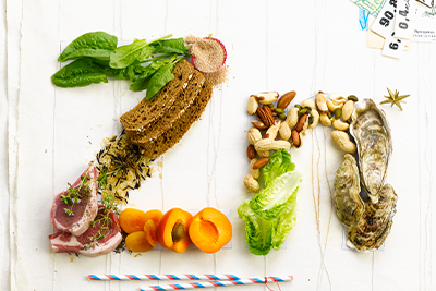 아연이 풍부한 대표적인 음식은 카사노바의 식품으로 알려진 굴로, 굴 85g에는 아연 32mg이 들어 있습니다. 하루에 필요한 아연은 성인 여성이 8mg, 남성은 10mg입니다. 즉, 굴 85g을 먹으면 남성과 여성의 하루 권장량의 3 ~ 4 배를 섭취할 수 있습니다. 더욱이 굴에 들어있는 철분과 구리는 빈혈 예방에 좋고, 타우린도 풍부해 콜레스테롤과 혈압을 낮추는 데 도움이 됩니다. 또한 굴에는 신진 대사를 돕고 신경계가 제대로 기능하도록 돕는 비타민 B12가 풍부하며, 마찬가지로 85g이면 하루 필요량의 100%를 충족할 수 있습니다.