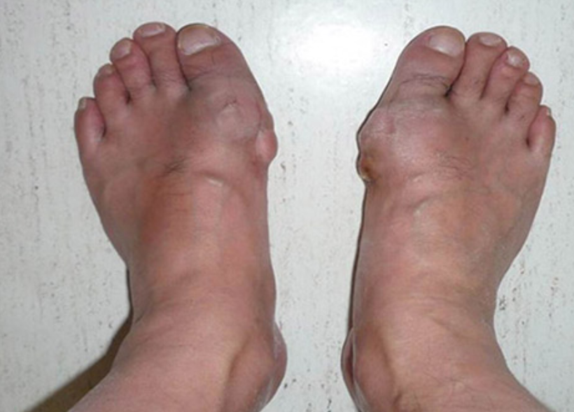 통풍은 요산결정체가 염증 반응을 일으키는 질환으로 관절에 요산결정체가 침착되면 통풍성 관절염이 나타납니다. 통풍성관절염은 급성 관절염의 형태로 나타난 후 재발성 발작을 일으키거나 관절 또는 주변부위의 통풍결절이 형성되는 만성 통풍성 관절염의 형태로 나타납니다.